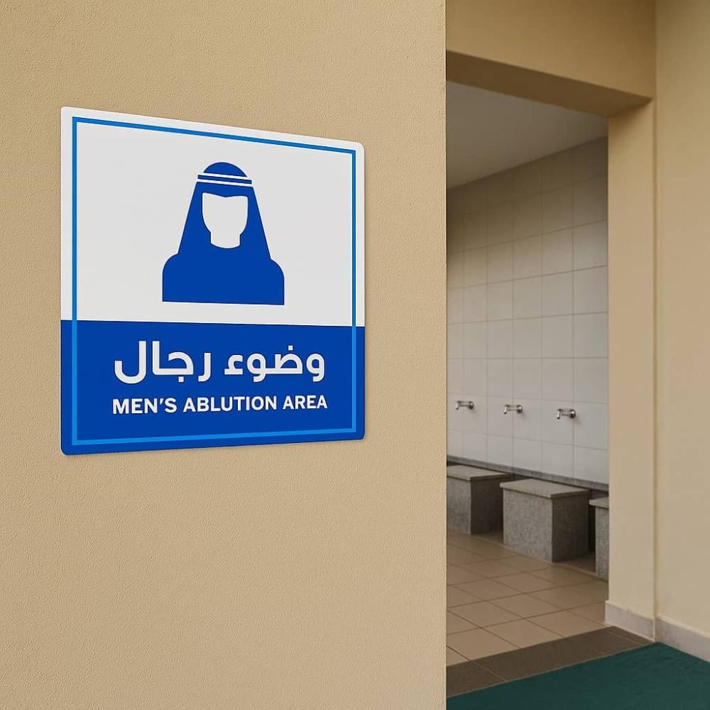 في المساجد والمرافق العامة، يُعد توجيه الزوار إلى أماكن الوضوء خطوة أساسية لتنظيم حركة المصلين.